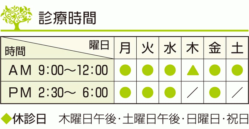 ※ 第2・第4木曜は休診の場合あり